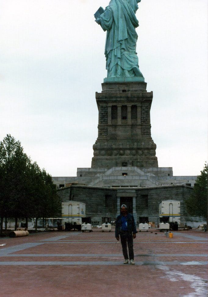 In the Spring of 1986, we got a call from the organizers who were planning the celebration for the re-dedication of the Statue of Liberty. Would we be interested in bringing our lights to New York to be part of the events planned for July 4th? John was from New York city so he knew the statue well, but for me, coming from a small town in California, it had always been a distant talisman. It’s image dotted my schoolbooks in the 1950s, more a symbol than a reality. To travel to New York city and actually set up lighting on Liberty Island was a dream some true.