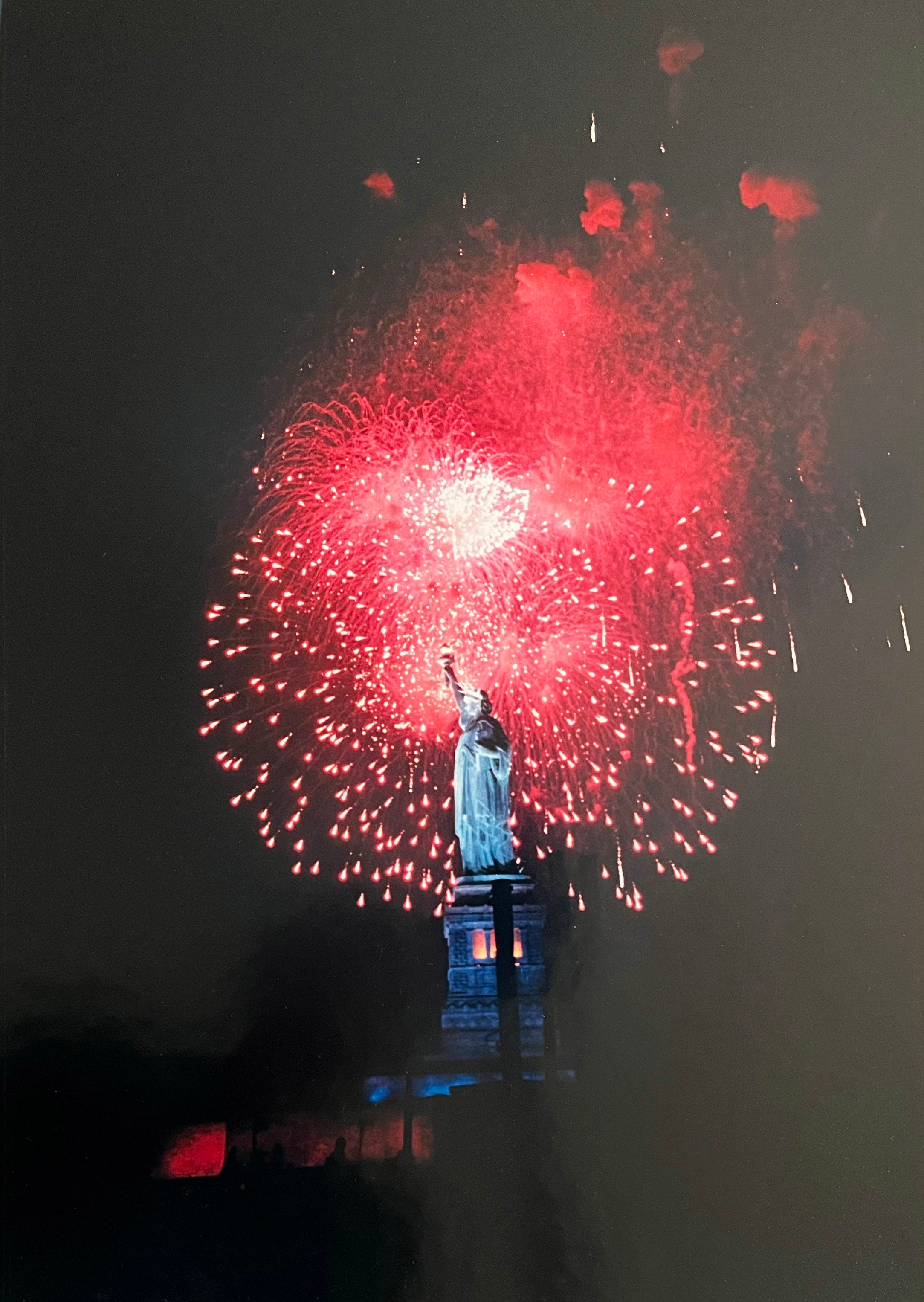 Out on the island, we looked out, as did Lady Liberty herself, on an armada of boats in every size imaginable. As dusk approached, it seemed you might be able to walk from boat to boat all the way across the harbor. On Governor’s Island, President Reagan signaled for the festivities to begin by pressing a button that activated a green laser. It beamed across the harbor from the broadcast stage to the statue, and all hell broke loose.